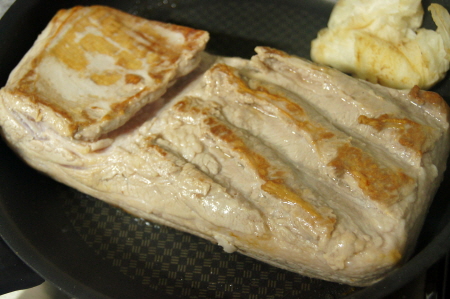 삼겹살은 먹기 좋은 크기로 잘라줍니다. 두께는 약 1cm 정도가 적당합니다. 삼겹살이 두껍게 되면 익는 시간이 오래 걸리므로, 적당한 크기로 썰어주세요~! ^^