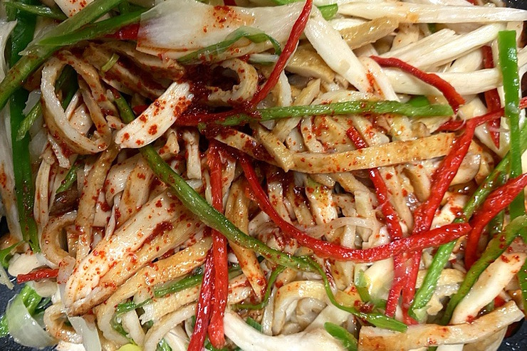 재료들이 충분히 볶아지면 준비한 양념을 넣고 잘 섞어주세요. 양념이 고루 배어들도록 볶아주면 더욱 맛있답니다. 😍