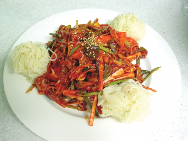 - 양념 만들기: 고춧가루, 고추장, 간장, 식초, 설탕, 참기름을 섞어 양념을 만듭니다.