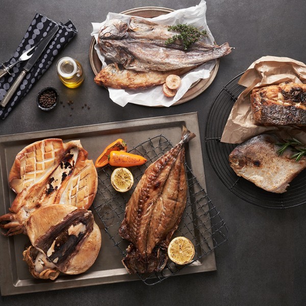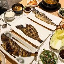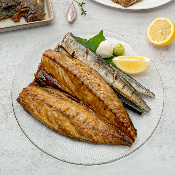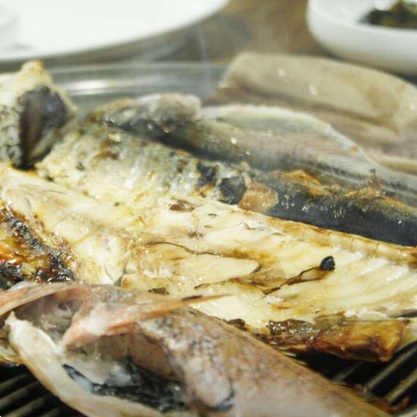 - 완성된 생선구이를 접시에 담아 서빙합니다.