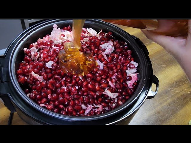 석류를 즙을 낼 때 씨앗을 제대로 제거하지 않으면 젤리가 굳을 때 질감이 거칠어지고, 석류젤리의 부드러운 식감을 방해할 수 있습니다. 꼭 과육에서 씨앗을 완전히 분리해 주세요! ^^ 씨앗이 남아 있으면 젤리의 질감이 변할 수 있고, 씨앗이 씹히면서 맛이 덜해질 수 있어요. 그러니 석류의 씨를 잘 빼는 것이 핵심이에요! :)