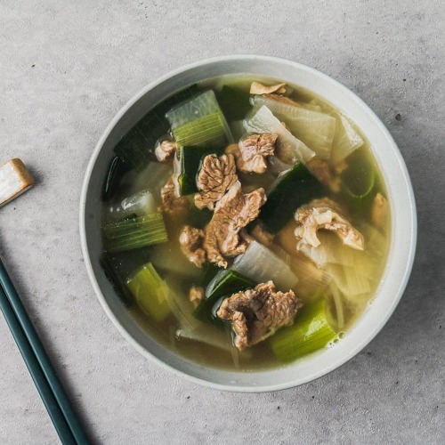 소고기가 완전히 익을 때까지 끓여준 뒤 대파 등을 넣어 마무리합니다. 향긋한 소고기무국이 완성됩니다.
