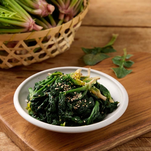 시금치를 데치면 무쳤을 때도 신선하고 풍부한 녹색을 유지할 수 있습니다. 시금치를 무칠 때는 오버쿡하지 않도록 주의하세요.