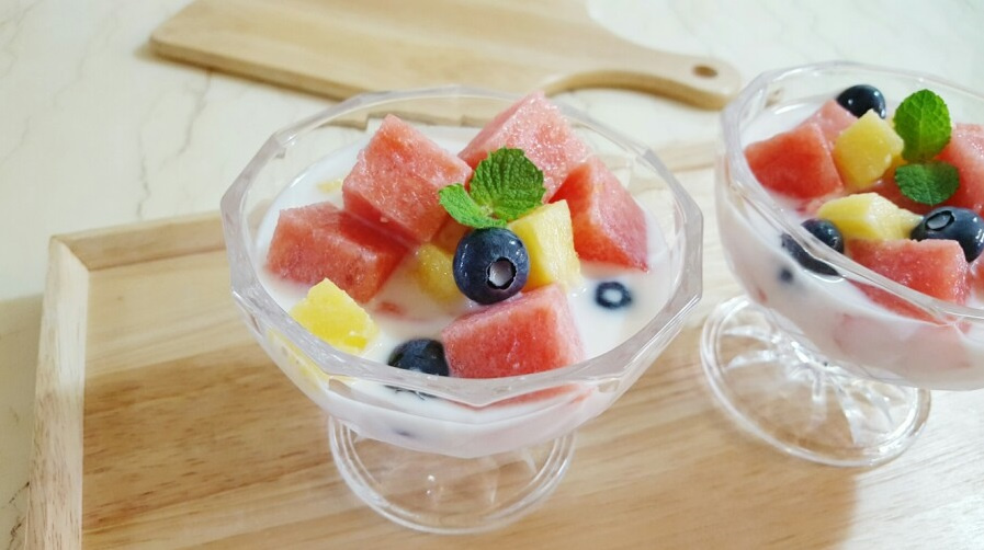 4. 특별한 소스: 수박화채 위에 민트잎이나 파슬리를 곁들여 고급스러운 느낌을 낼 수 있습니다.