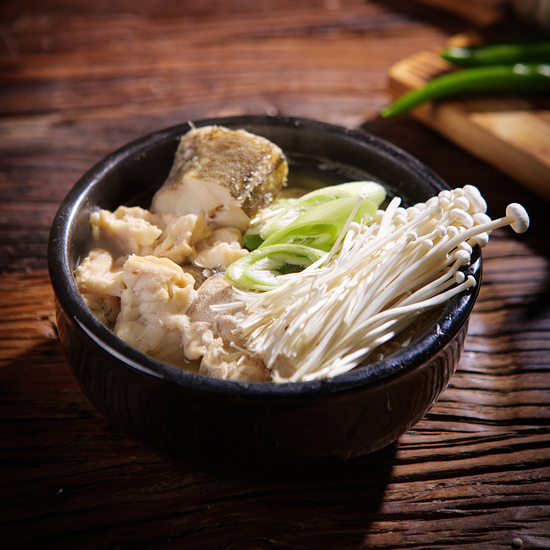 - 제공: 깊고 진한 대구탕 국물을 그릇에 담고, 곁들이는 밥과 함께 푸짐한 한 끼 식사를 즐깁니다.