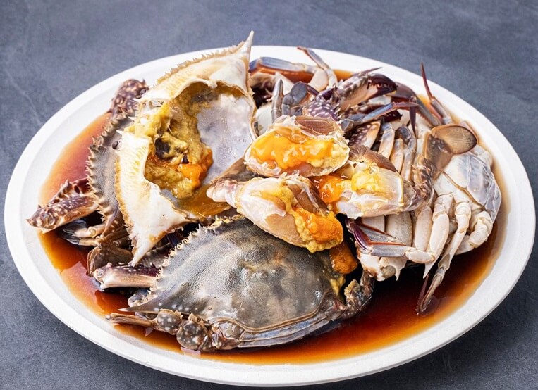 - 숙성된 꽃게를 꺼내 접시에 담습니다.
