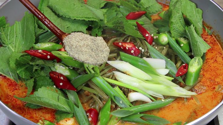 마지막으로 청양고추를 얇게 썰어 넣으면 얼큰한 향과 함께 칼칼한 맛이 더해집니다. 🌶️ 또한, 깻잎과 다진 마늘을 추가로 넣으면 향이 한층 더 풍부해집니다.