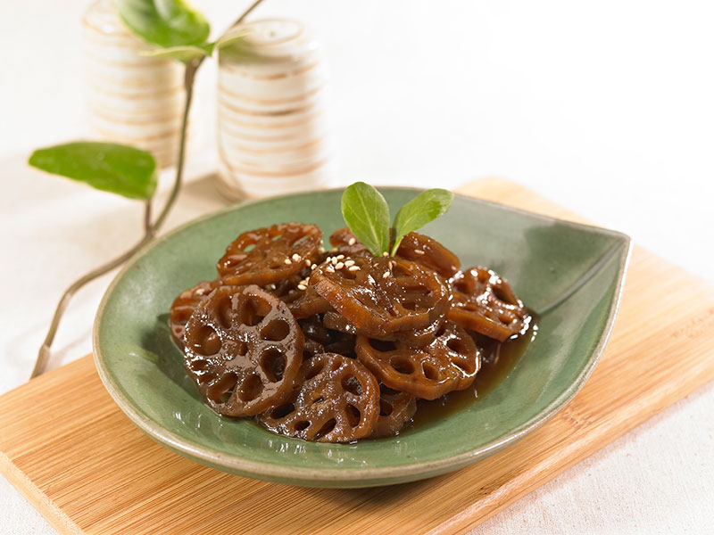 - 조림: 팬에 기름을 두르고 연근을 넣어 볶아주세요. 연근이 약간 익으면 간장 소스를 넣고 함께 조려주세요.