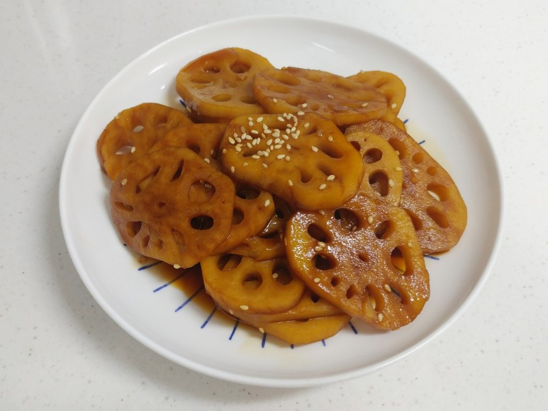 - 완성: 간장 소스가 고루 배이면 뚜껑을 덮고 중불에서 약 10분간 조려주세요. 연근이 부드럽게 익으면 참기름과 깨를 넣고 마무리합니다.