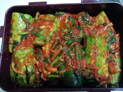 - 오이소박이를 담은 용기의 뚜껑을 꼭 덮어 냉장고에 보관하세요.