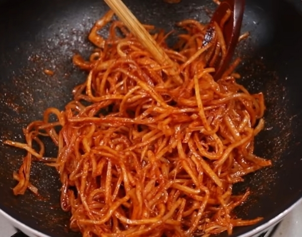 오징어채는 너무 오래 볶으면 질겨질 수 있으니, 적당한 시간 동안만 조리해야 해요! 볶는 동안 재료의 상태를 주의 깊게 살펴보세요. 🕒