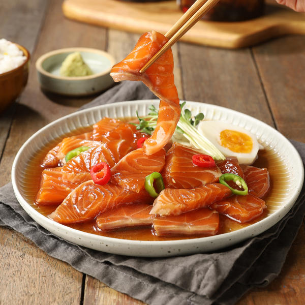 "저희 집 식사 메뉴에 이 연어장이 자주 나오게 되었어요. 가족들이 너무 맛있게 먹어서 기분이 좋아지는 것 같아요. 간단하게 만들 수 있어서 좋아요!" - 이지은
