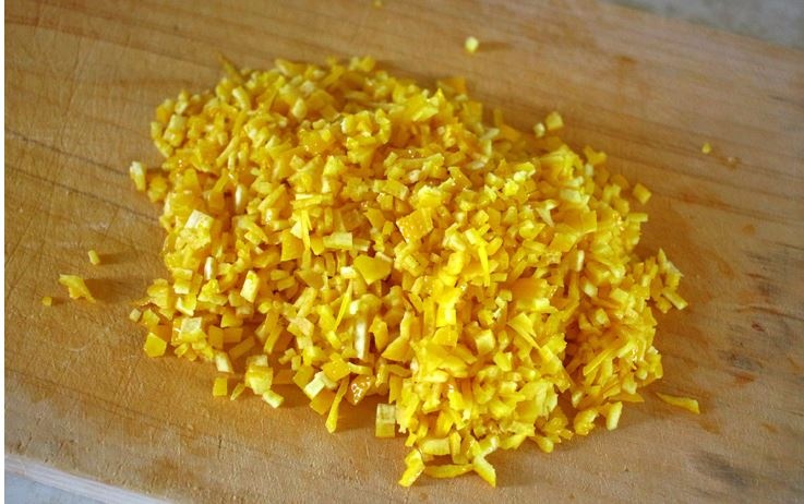 이제 유자와 설탕을 섞는 단계입니다. 유자 속을 잘게 잘라 놓고, 설탕과 함께 큰 그릇에 넣어 주세요. 설탕이 유자의 수분을 빨아들여 유자와 설탕이 자연스럽게 섞여야 합니다. 설탕이 유자에 잘 묻을 수 있도록 몇 분간 잘 섞어 주세요. ^^