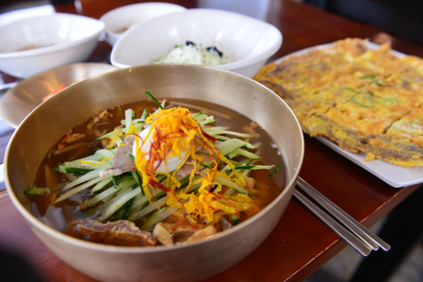 냄비에 식용유를 두르고, 소고기를 넣어 약불에서 볶아줍니다. 소고기가 익으면서 향긋한 향이 퍼져나올 것입니다. 볶은 소고기를 한쪽으로 옮겨 놓고, 다시 냄비에 계란물을 부어줍니다. 계란물이 익으면 소고기 위에 올려놓고, 한쪽으로 접어가며 부쳐줍니다.