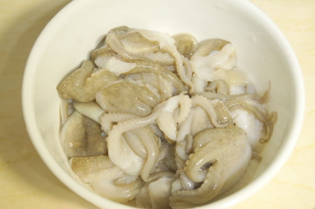 주꾸미는 먼저 소금물에 10분 정도 담가둔 후 흐르는 물에 깨끗이 씻어주세요. 이 과정에서 잔류해 있을 수 있는 불순물이 제거된답니다! 내장은 제거하고 먹기 좋은 크기(약 3-4cm)로 잘라주면 되는데, 너무 작게 자르면 쫄깃함이 줄어들 수 있으니 주의~