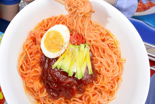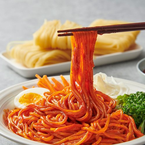 1. 먼저 쫄면을 물에 담가 부드럽게 불립니다. 보통 20분 정도가 적당합니다. 불린 쫄면은 뜨거운 물에 3분 정도 삶아주세요. 그 후 찬물에 헹궈 식힙니다.