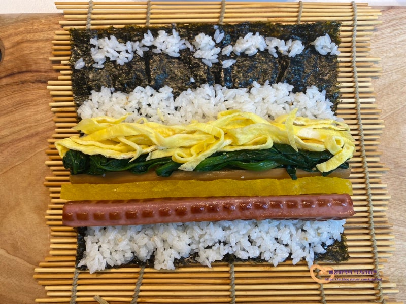 - 단무지 대신 다양한 재료를 넣어봐요! 오이, 아보카도, 새우 등을 넣으면 맛이 다양해져요!~