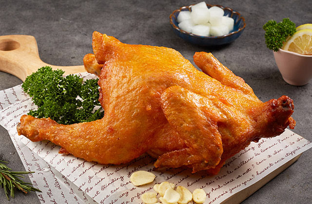 마지막으로 닭을 접시에 담아 참기름과 참깨를 뿌려주세요. 다양한 채소와 함께 곁들이면 더욱 맛있는 치킨이 완성됩니다!