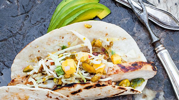 또띠야는 팬에서 가볍게 데우거나 전자레인지를 이용하여 따뜻하게 만들어주세요. 따뜻한 또띠야는 재료를 더 잘 감싸주고, 맛도 더 좋답니다! :D