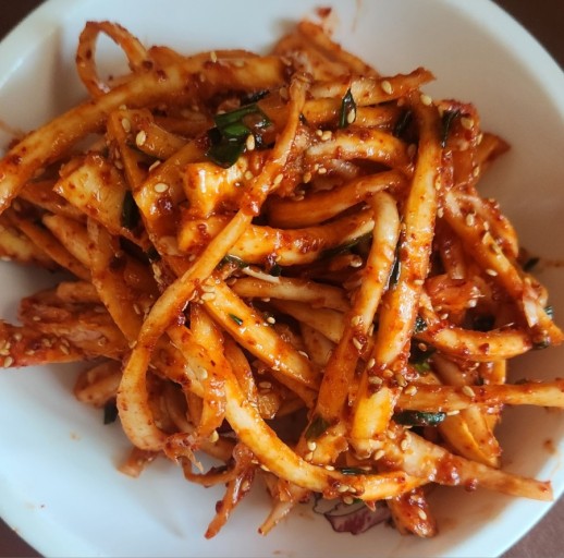 "도라지 무침을 먹은 후에 소화가 잘되고 기분이 좋아져요. 특히 이 레시피는 양념 비율이 딱 좋아서 더욱 더 맛있게 먹을 수 있었습니다. 간단한 반찬으로 딱이에요!" - 김유신님
