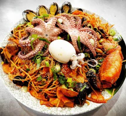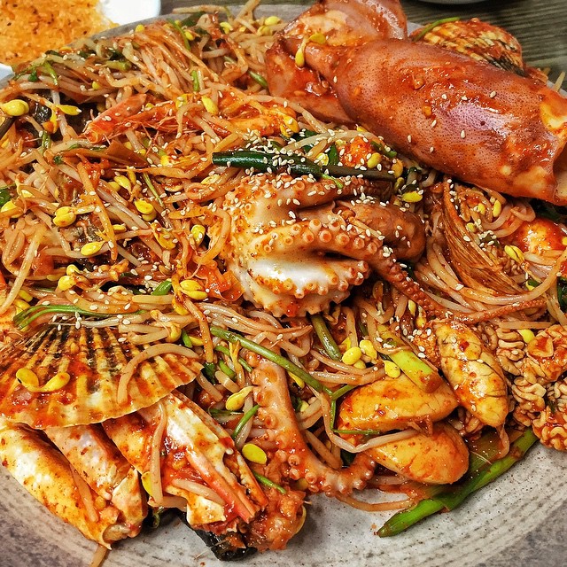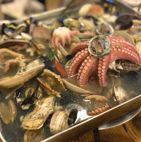 - 해산물을 준비한 냄비에 넣고 잘 섞어줍니다. 새우, 문어, 오징어 등을 고루 섞어주세요.