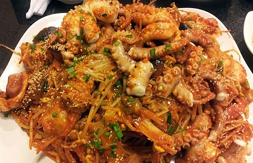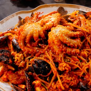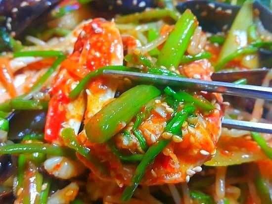 - 해산물이 익으면 불을 끄고 참기름을 넣고 한 번 더 섞어줍니다.