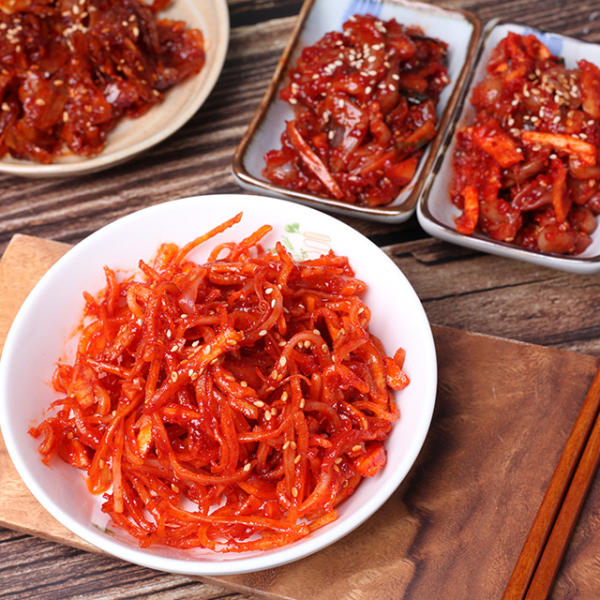 A: 네, 도라지 무침은 밑반찬으로는 물론이고, 술안주나 샐러드에 함께 활용할 수 있습니다. 또한, 참치 김밥이나 삼각 김밥 속에도 넣어 먹을 수 있습니다.