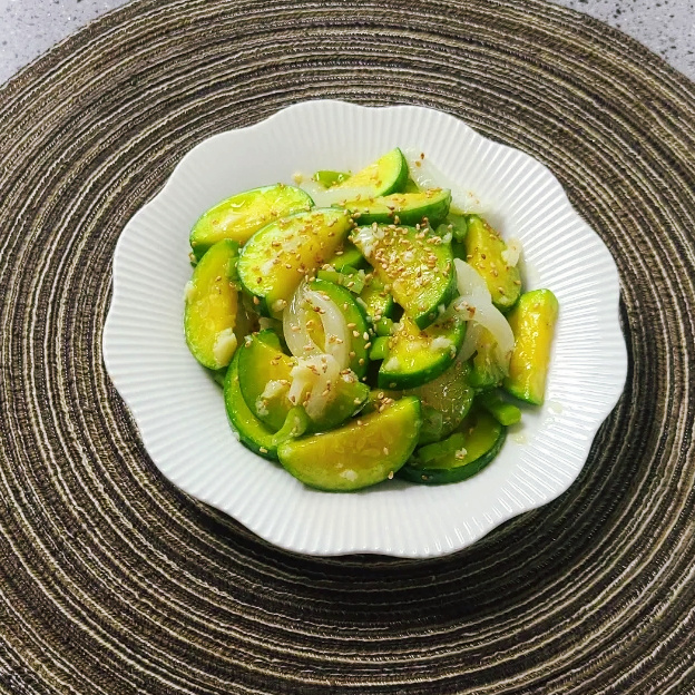마지막으로 간장, 소금, 후추로 간을 맞춰주고, 깨소금을 뿌려 마무리합니다. 고소한 참기름 향과 신선한 호박의 맛이 어우러진 호박볶음이 완성되었습니다.