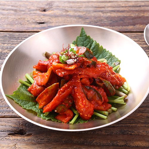 - 완성: 야채와 홍어가 골고루 섞이면 완성입니다. 그릇에 담아 테이블에 올립니다.