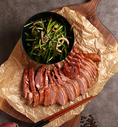훈제 오리 서빙과 함께